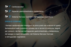 I più venduti. Fra i prodotti in cima alla classifica delle vendite ci sono i farmaci cardiovascolari al primo posto sia in termini di spesa farmaceutica totale, pubblica e privata, sia in termini di consumo, seguiti, dai medicinali per l’apparato gastrointestinale e il metabolismo, il sangue e gli organi emopoietici, del Sistema nervoso centrale e dell’apparato respiratorio.